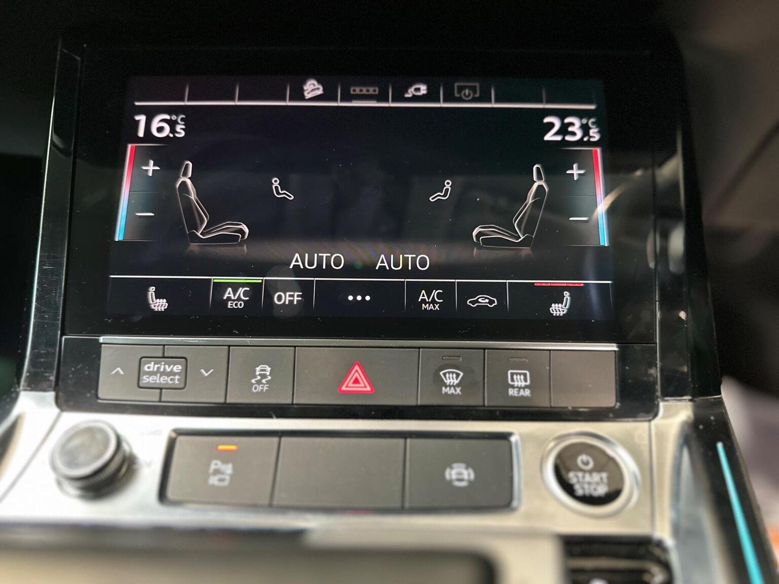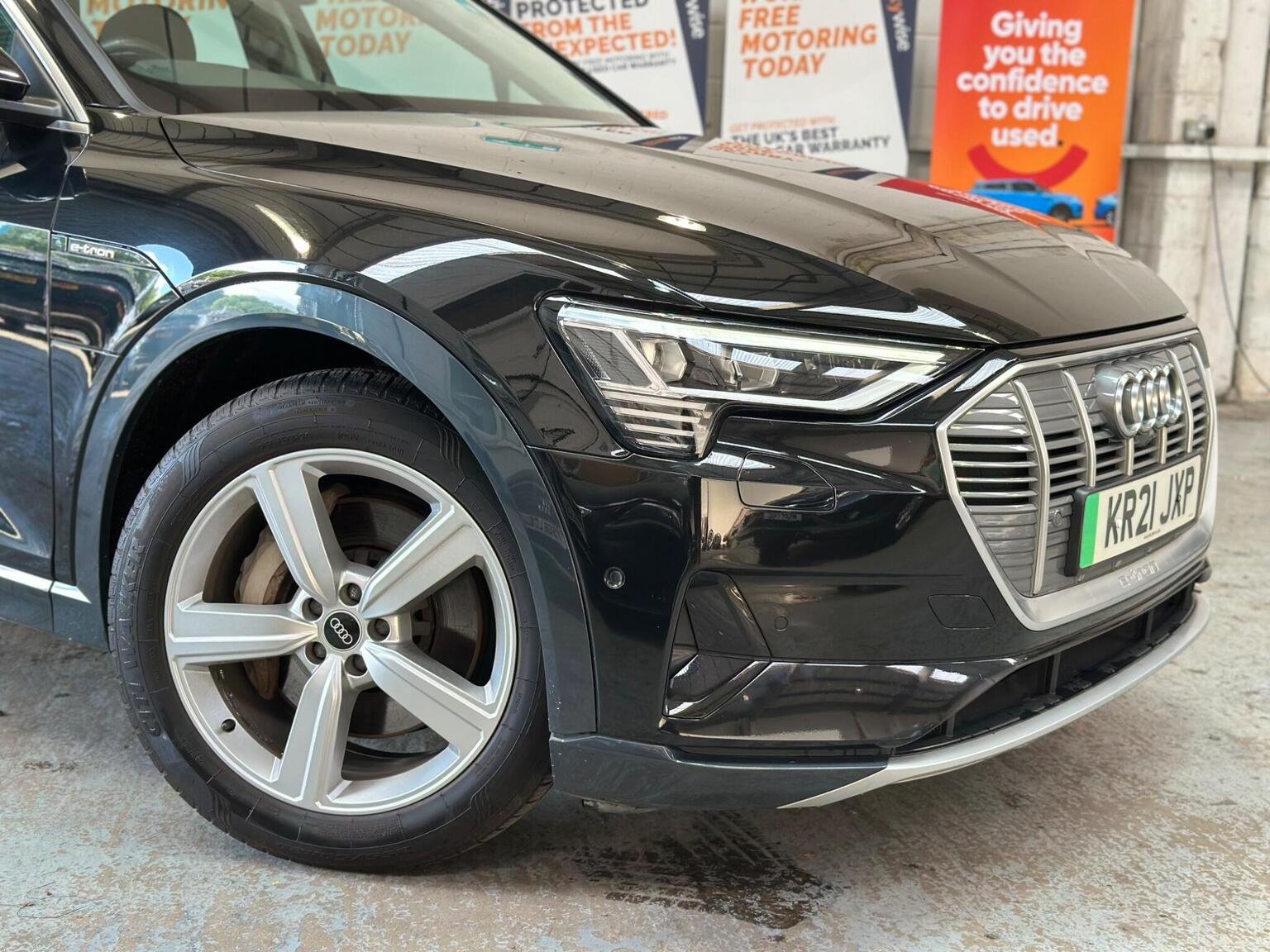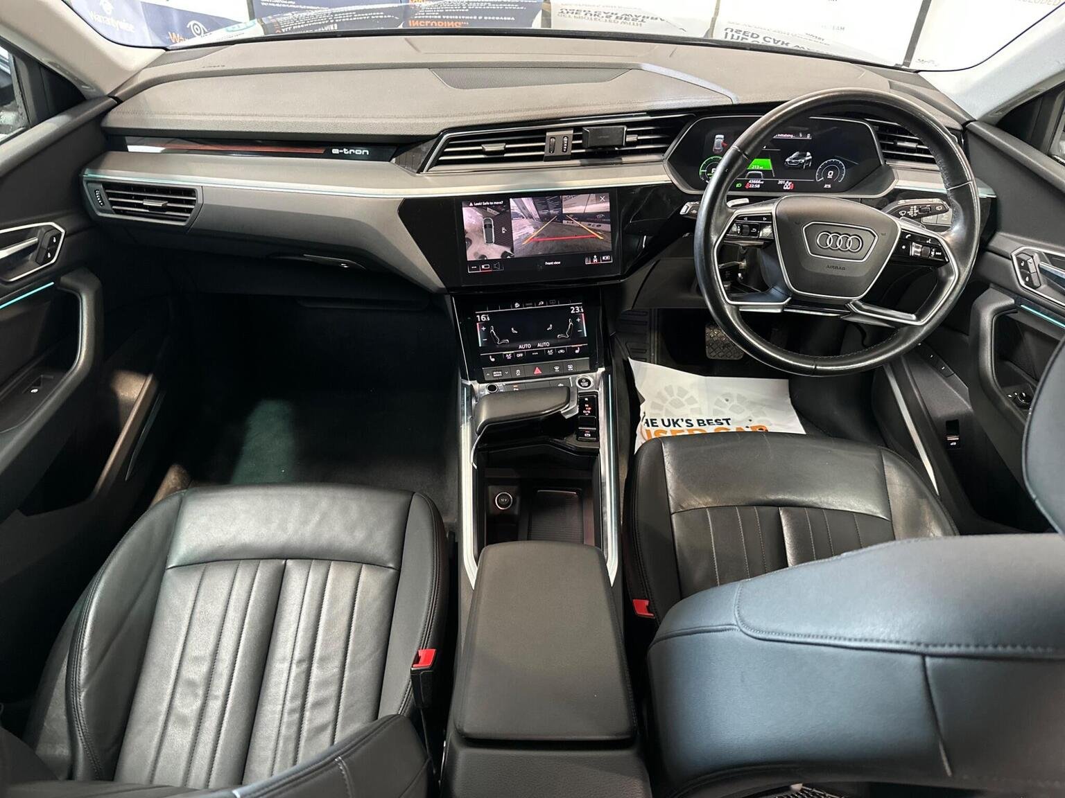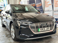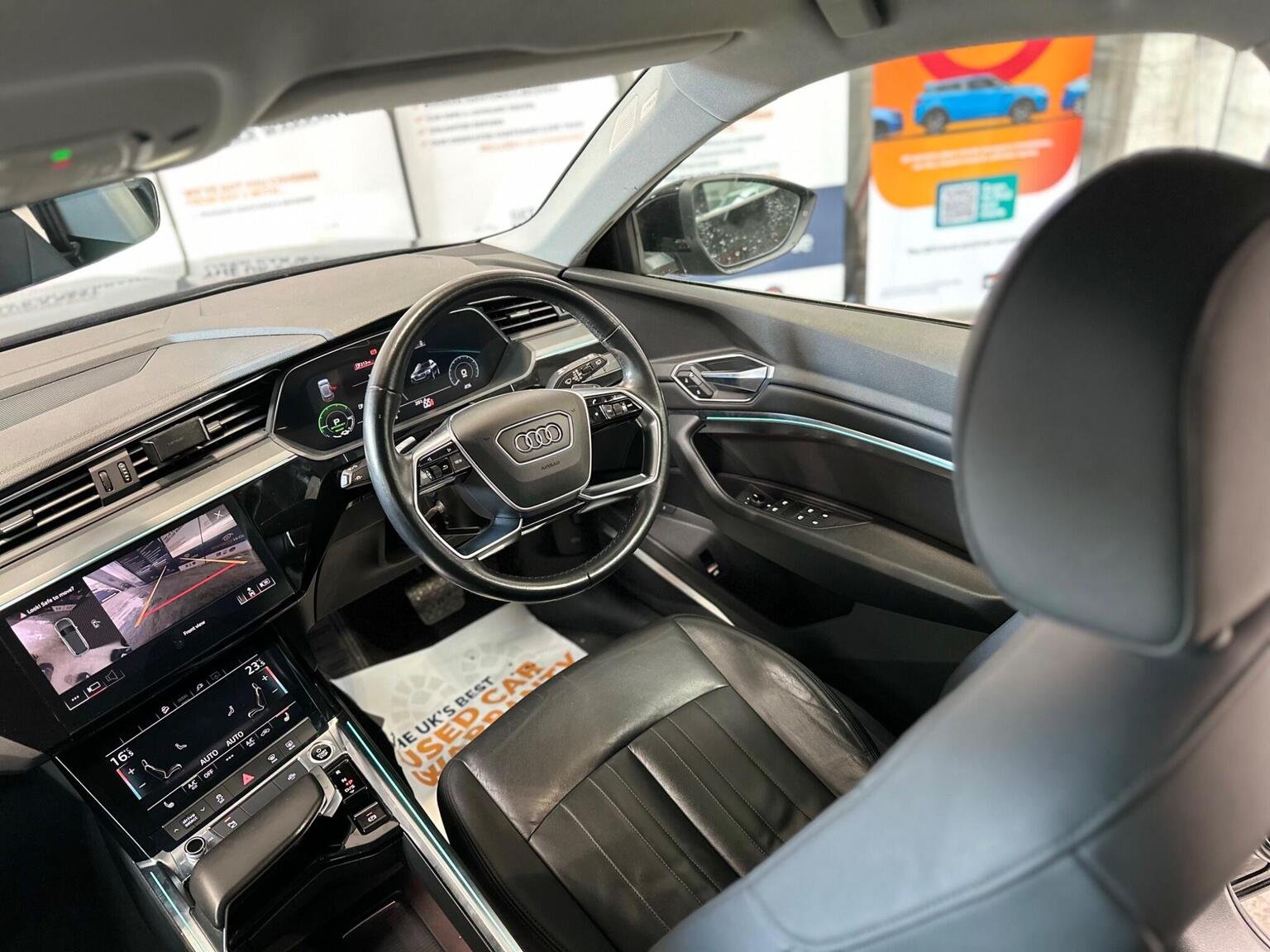 11 kW Onboard Charger, 2-Zone Automatic Air Conditioning, 20in Alloy Wheels - 5-Arm Design, 4-Way Lumbar Support for Front Seats, ABS - Anti-Lock Braking System, AC and DC Charging Access Point on Drivers Side and Second AC Charging Access Point on Passenger Side, AMI - Audi Music Interface - Front, Active Vehicle Alerting System - AVAS, Adaptive Air Suspension, Airbags - Driver, Anti-Theft Alarm, Anti-Theft Wheel Bolts and Wheel Loosening Warning, Audi Connect, Audi Connect Safety and Service - e-call, Audi Drive Select, Audi Pre-Sense Front and Basic, Audi Smartphone Interface Includes Wireless Functionality, Audi Sound System, Audi Virtual Cockpit, Auto Dimming and Frameless Rear View Mirror, Body Coloured Door Mirrors, Bumpers - Contrasting, Cloth Headlining in Lunar Silver, Compact e-tron Charging System, Cruise Control with Speed Limiter, DAB Digital Radio, Door Mirrors - Electrically Adjustable - Heated - Folding - Automatically Dimming with Memory Function with Kerb View Function for Passenger Side, Door Sills with Aluminium Inlays, Electric Windows - Front and Rear, Electrically Adjustable Front Seats including Memory Function for Drivers Seat, First Aid Kit and Warning Triangle, Four-Spoke Multi-Function Leather Steering Wheel with Paddles, Front and Rear Floor Mats, Gloss Styling Pack, Heated Front Seats, Household Plug Type G - GB, ISOFIX Child Seat Mounting for Front Passenger Seat with Front Passenger Airbag Deactivation, ISOFIX Child Seat Mounting for Outer Rear Seats, Industry Plug CEE 32 A-230 V, Inlays in Graphite Grey Paint Finish, Keyless Go, LED Headlights with Function-On-Demand Preparation, LED Interior Light Package, LED Rear Lights, Lane Departure Warning, Luggage Compartment Cover, MMI Navigation Plus with MMI Touch - Twin Touch Screens with Haptic Feedback, Mode 3 Type 2-AC Charging Cable 22kW, Parking System Plus with 360 Degree Sensors and Function-On-Demand Preparation, Power Operated Tailgate, Progressive Steering, Rear View Camera, Removable Net Partition, Side Airbags - Front and Head Airbag System, Sun Visors with Illuminated Vanity Mirrors, Tool Kit, Vehicle Inlet Combo 2 - EU CCS